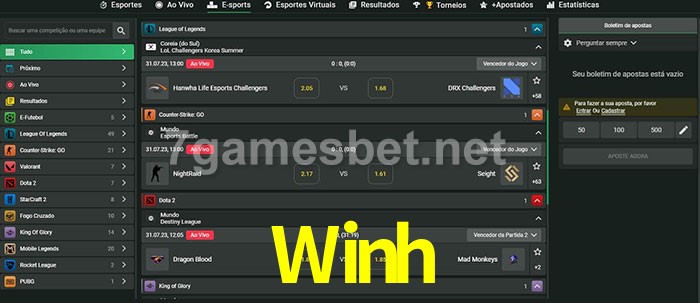O Winh oferece uma grande seleção de opções de apostas em e-sports com probabilidades competitivas